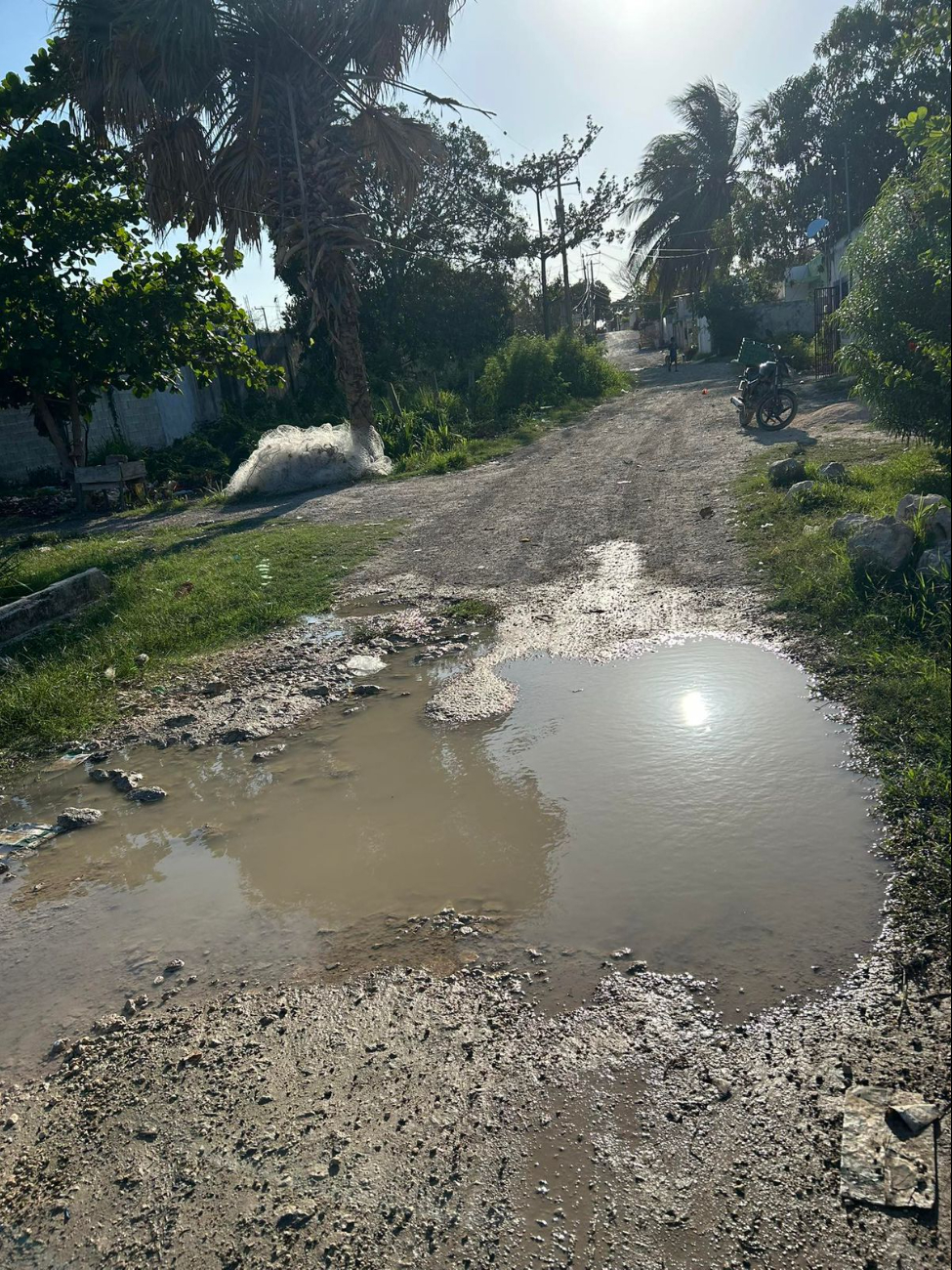 Vecinos de la colonia San Rafael, en Seybaplaya, exigen la intervención de las autoridades competentes ante los problemas que viven por la calle 33 en materia de pavimentación, infraestructura eléctrica y una fuga de agua.