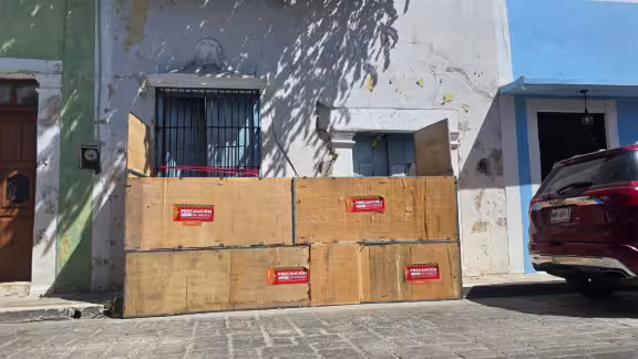 El inmueble, localizado sobre la calle 16 entre 59 y 61, evidencia un avanzado deterioro derivado del abandono prolongado y la falta de mantenimiento, lo que ha encendido las alertas entre autoridades y vecinos. Personal de Protección Civil Municipal acudió al lugar para delimitar el área y prevenir riesgos a la población, colocando sellos de precaución y notificando a la presunta propietaria Evangelina O.O. para que atienda la situación.