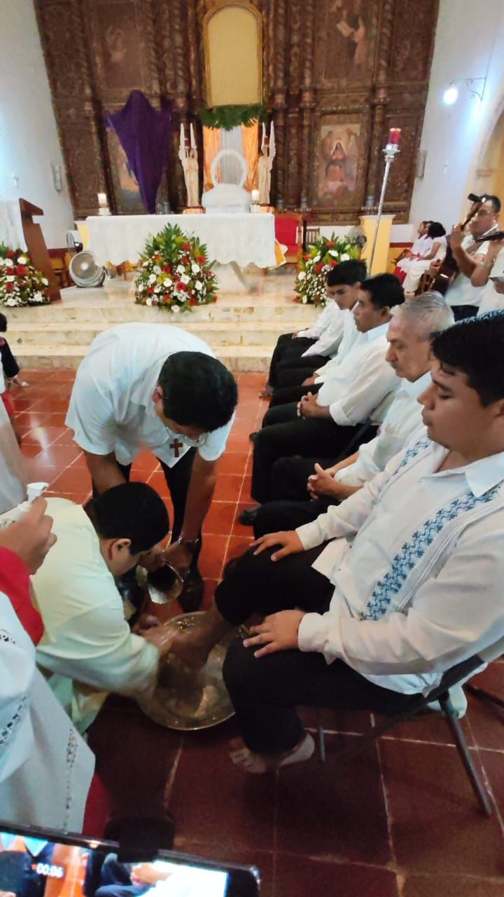 Este jueves por la tarde-noche, en misa realizado en la Iglesia de San Antonio de Padua de la ciudad de Hopelchén, se recordó la humildad de Jesús al lavarle los pies a sus discípulos, y en esta ocasión se lavó los pies a niños, jóvenes y adultos.