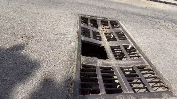 La estructura pluvial visiblemente dañada, presenta un hueco en el centro donde le faltan varias barras metálicas, las cuales fueron robadas.