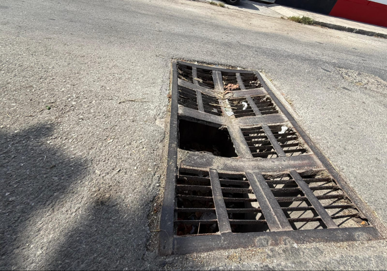 La estructura pluvial visiblemente dañada, presenta un hueco en el centro donde le faltan varias barras metálicas, las cuales fueron robadas.