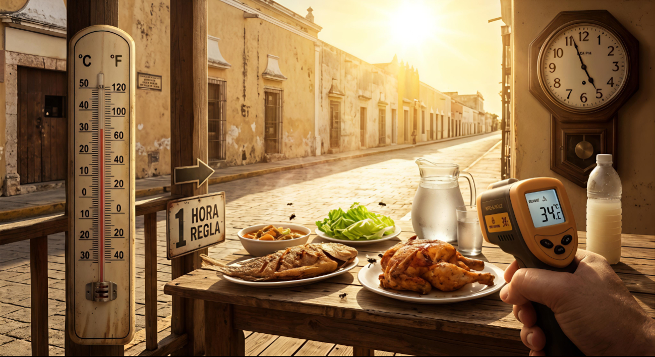 Las altas temperaturas en Campeche aceleran la descomposición de alimentos; expertos advierten que la comida perecedera no debe durar más de una hora fuera del refri.