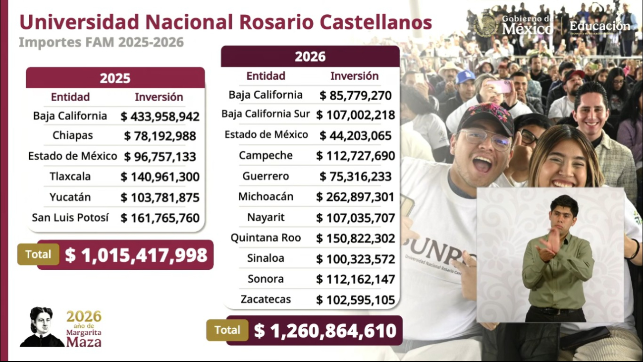 Por su parte, el titular de la Secretaría de Educación Pública (SEP), Mario Delgado Carrillo, informó que en total se realizarán 11 acciones educativas durante 2026 relacionadas con el impulso de la Universidad Nacional “Rosario Castellanos”.