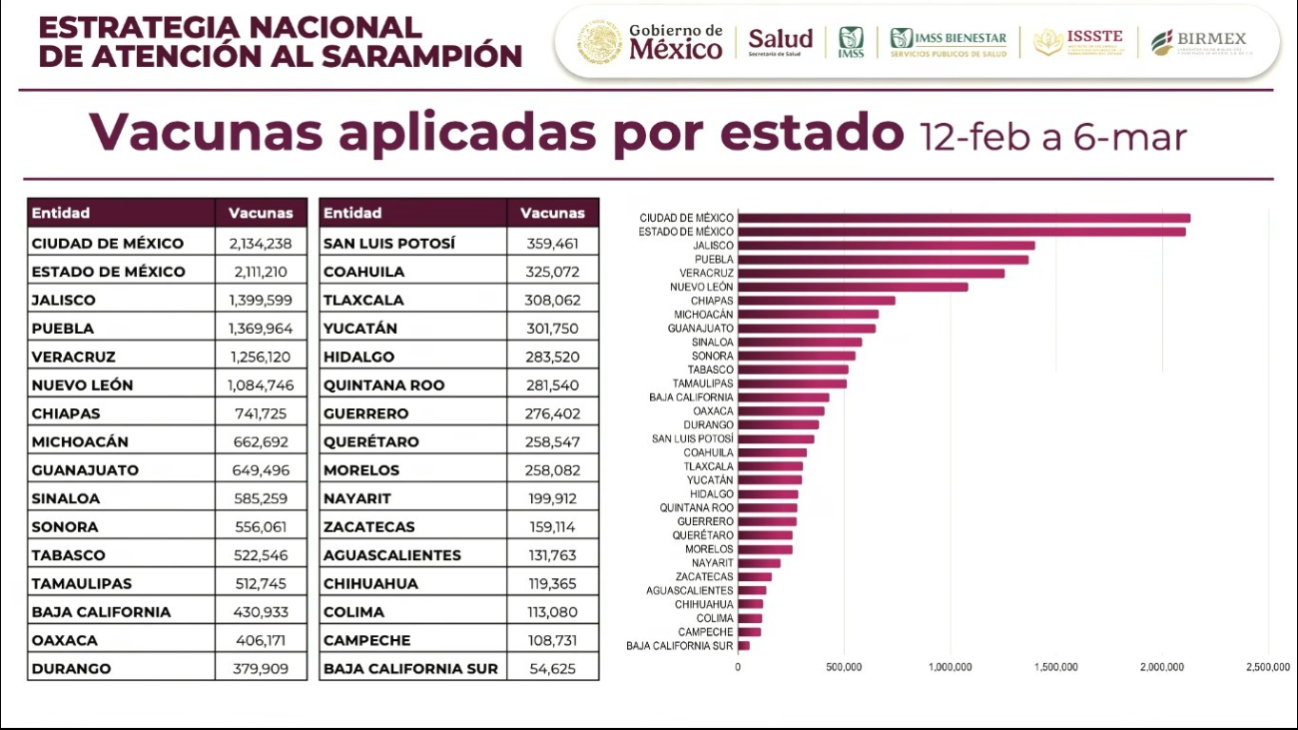 Cabe señalar que en el Estado existen 161 puestos de vacunación distribuidos entre los 13 municipios de la Entidad, mismos que operan para atender a quienes quieran vacunarse contra el sarampión.