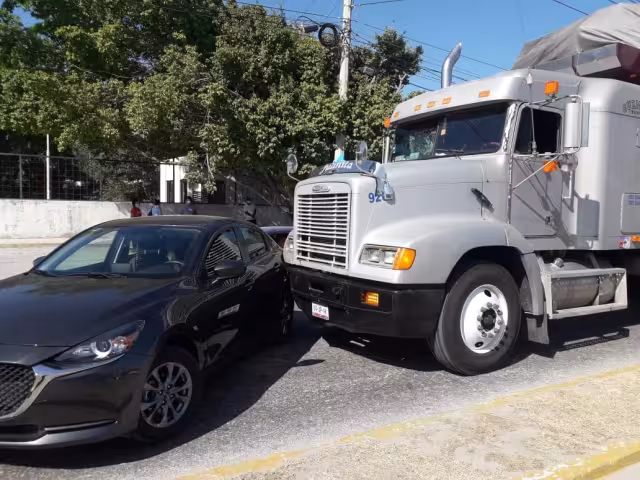 La conductora de un automóvil marca Mazda 2 color negro terminó invadiendo carril de la alta velocidad lo que ocasionó que terminara impactada por un tractocamión, ocasionando daños materiales cuantiosos por más de 35 mil pesos, el hecho se registró sobre la avenida isla de Tris entre Paseo de Mar del Fraccionamiento Bivalvo en punto de las 16:40 horas de éste miércoles. Ante el impacto no se registraron personas lesionadas en el interior del automóvil con placas de circulación XMP-775-A del Estado de Tamaulipas, solo dejando daños de mayor cuantía sin embargo ambas unidades estuvieron ocasionando un caos vehicular por varios minutos registrando enojo entre los automovilistas.
