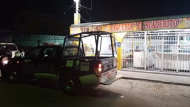 Dos sujetos a bordo de una camioneta negra, sin matrícula de circulación, llegaron como clientes y pidieron una orden de tacos mientras se encontraban preparando los alimentos, uno de los objetos sacó de entre sus ropas un arma de fuego donde realizó una detonación al aire indicando que se trataba de un asalto.