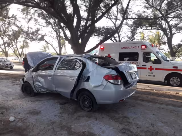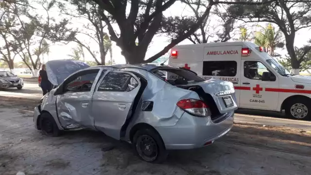 Conductor ebrio estrella su auto contra un árbol en Ciudad del Carmen