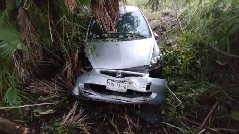 Auto se sale de la carretera en Ciudad del Carmen; un tráiler le cerro el paso
