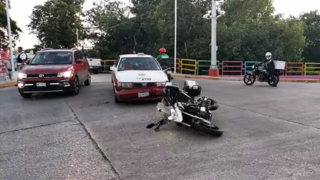 Daños de mayor cuantía fue el saldo de una colisión entre el guiador de una motocicleta particular y un vehículo afiliado al SUTV. El percance ocurrió en calles de la colonia electricistas lugar donde el motociclista intentó ganarle el paso al chofer del taxi registrándose la colisión que dejó daños de mayor cuantía.