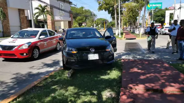 Para evitar un choque de mayores dimensiones, el conductor de una automóvil volanteó y terminó sobre el camellón en Ciudad del Carmen