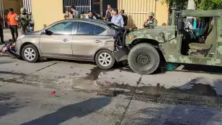 Fuerte accidente de un auto y un camión del ejército en la Morelos, en Ciudad del Carmen