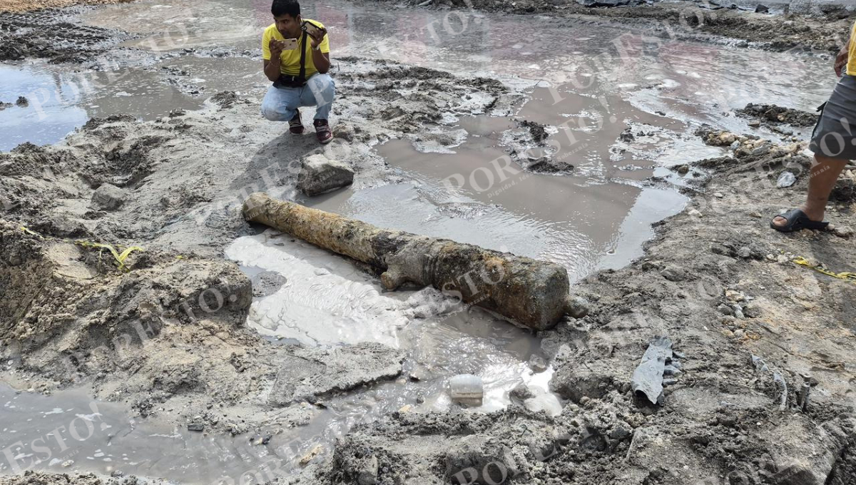 Un antiguo cañón, presuntamente de la época colonial y con una antigüedad superior a los 300 años, fue localizado enterrado bajo la vía pública en la colonia Guanal, lo que derivó en la inmediata movilización de autoridades municipales y personal del Instituto Nacional de Antropología e Historia (INAH).
