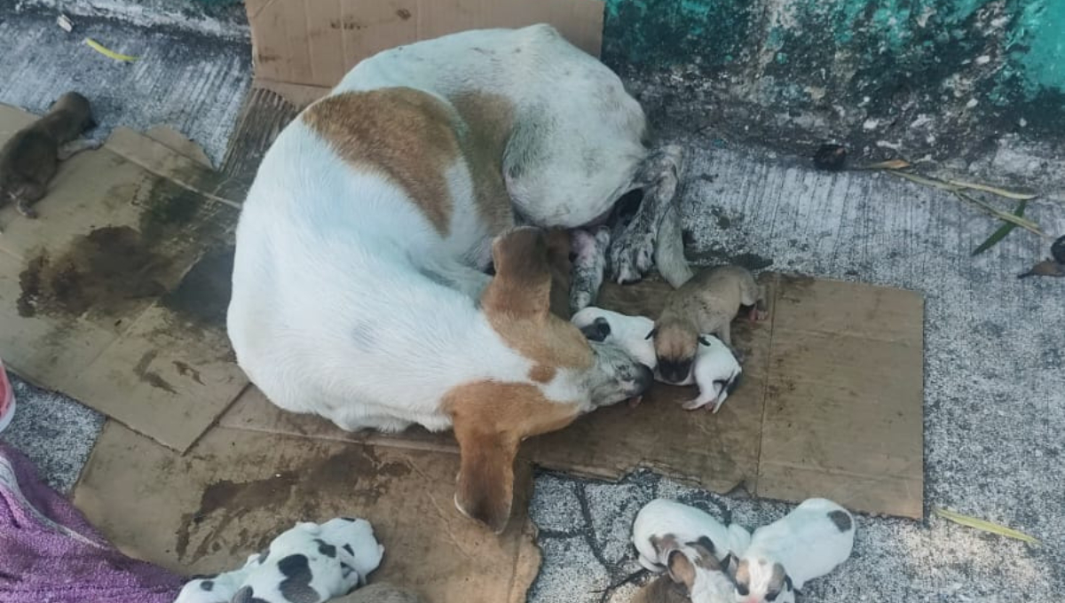 Indignación en Carmen: Abandonan a perrita con 12 cachorros en la calle; cinco murieron: VIDEO