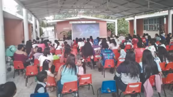 Este jueves se realizó una función de cine en el Jardín de Niños “Estefanía Castañeda” con un costo de entrada económico, ya que el plantel recauda fondos para los festejos del Día del Niño. La función empezó a las 17:00 horas con la asistencia de padres de familia que llevaron a sus niños para ver una película infantil.