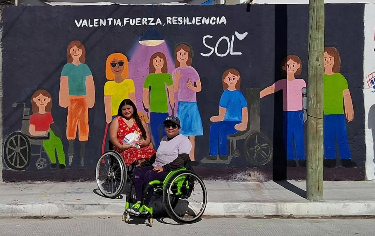 El segundo mural, realizado en el marco del Día Internacional de la Mujer, estuvo a cargo de Sol, quien pese a su discapacidad motriz ha fortalecido su proceso de empoderamiento y confianza a través del arte. Como participante del taller de pintura “Creer para Crear”, acompañada por voluntarias y voluntarios de la comunidad de Llanta de Perro, concluyó la obra tras una larga jornada.