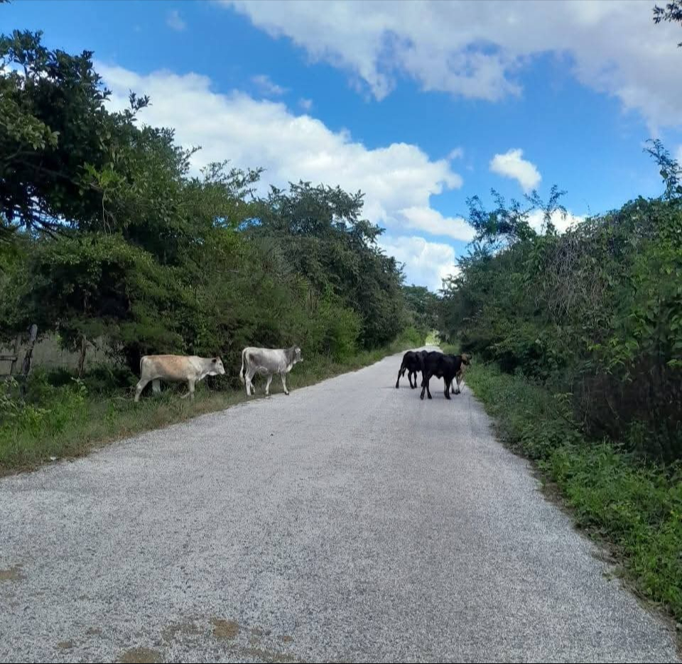 El cerco roto del terreno ganadero se ubica a cinco kilómetros de Chekubul, antes del crucero de Oxcabal, donde diversos choferes advierten del riesgo que representan los animales sobre el camino, pero nadie atiende sus querellas.