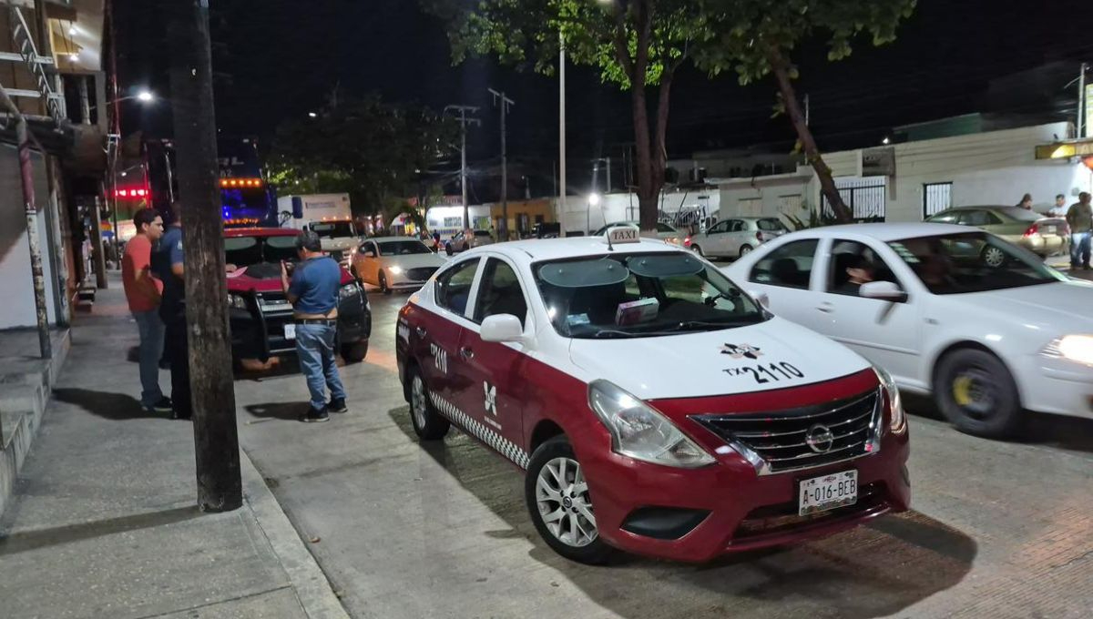 Sin embargo, en ese momento, el conductor de un automóvil Nissan Versa habilitado como taxi, en colores rojo y blanco, con número económico 2110 y placas del estado de Campeche, realizó un frenado repentino. Esto provocó que el operador de la pesada unidad también frenara de forma abrupta, aunque no logró evitar impactar levemente la parte trasera del vehículo de alquiler.