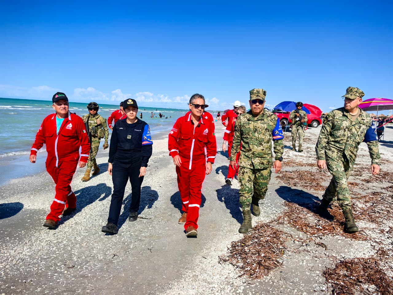 Detalló que, a través de sobrevuelos con helicópteros, se mantiene vigilancia constante en la Sonda de Campeche, así como en zonas estratégicas del Golfo como Veracruz, Coatzacoalcos y Tampico. Estas acciones se complementan con el monitoreo en al menos 48 playas, donde brigadas trabajan de manera continua desde temprana hora para evaluar condiciones y realizar labores de limpieza cuando es necesario. “Las playas están limpias, las hemos recorrido completamente y el estatus es positivo”, afirmó el funcionario, quien destacó que la presencia en territorio permite tener información directa y actualizada sobre cualquier situación.