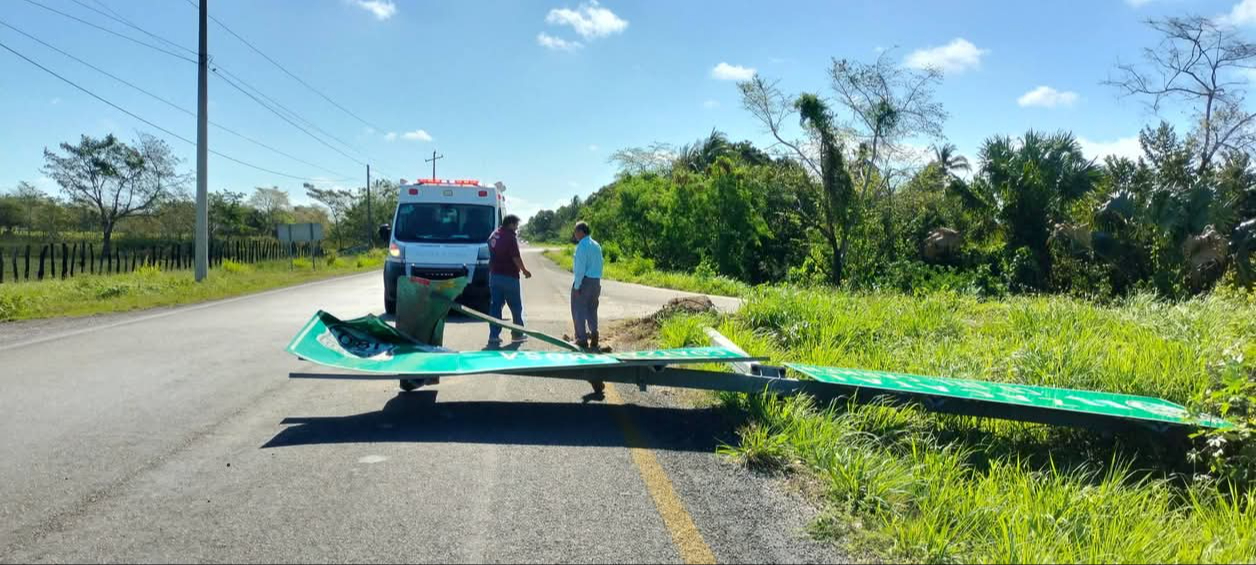 Cae señalamiento en carretera 180 y pone en riesgo a conductores en Campeche