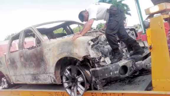 Los agentes dijeron que es el segundo carro que se calcina en la zona de La Montaña, la primera fue en la zona menonita de las Flores, donde decomisaron dos cuatrimotos, dos motocicletas y la tercera camioneta fue en la cercanía del arco de la entrada entre Yucatán y Campeche camino a Bolonchén de Rejón, donde la dejaron por casi una semana y después la quemaron.
