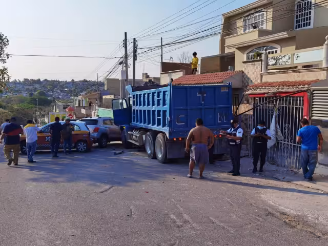 Una falla mecánica en el sistema de frenos originó que el operador realizara una mala maniobra impactando a su paso tres vehículos debidamente estacionados y dos fachadas de predios en la unidad habitacional Ciudad Concordia, estimándose los daños en cerca de los 2 millones de pesos de manera en general, acudiendo al lugar agentes de vialidad para cerrar la circulación y solicitar el apoyo de al menos tres grúas.