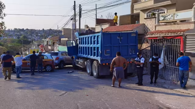 Durante el recorrido de la pesada unidad, de igual manera impactó una camioneta Chevrolet Trax de color gris y con placas DKB-7636 del estado, mientras que el Spark al ser el primer vehículo que arrastró, al arrinconarlo contra los dos predios, al final acabo prensado entre el volquete, la barda de uno de los predios y un poste, siendo catalogado como perdida total al igual que el taxi, mientras que la camioneta presentaba averías en las partes delantera y trasera, llegando al lugar agentes de Vialidad para tomar conocimiento y cerrar la circulación de la avenida Circuito Pablo García Norte, ya que las unidades quedaron atravesadas.