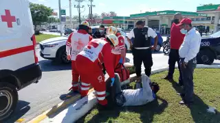 Moto repartidor sufre fractura al chocar contra una automóvil en Campeche