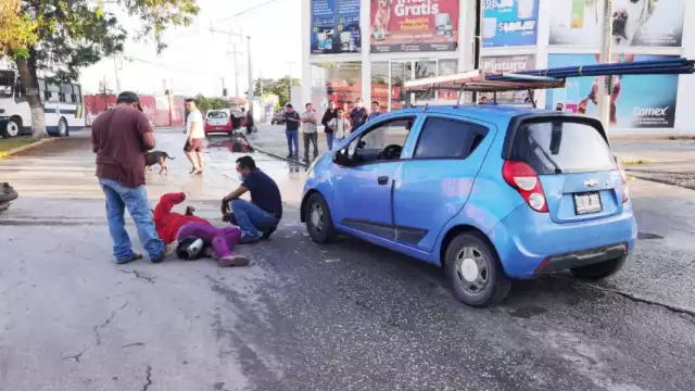 De mal y de malas inició el día un motociclista en San Francisco de Campeche, Campeche, pues al transitar por la Unidad Habitacional Fidel Velázquez fue arrollado por el conductor de un automóvil compacto, cuando intentó ganarle el paso en una glorieta que conecta diversos tramos vehiculares.