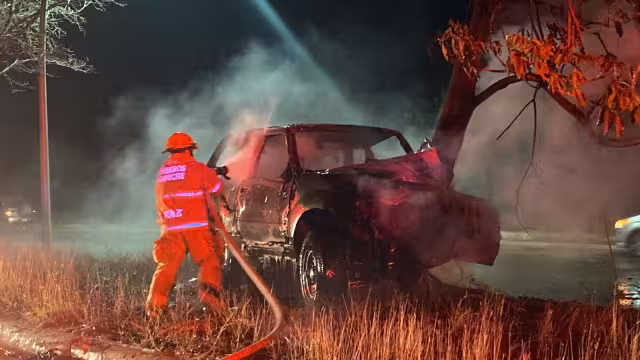 Este domingo a altas horas de la noche ocurrió un percance automovilístico debido a que el conductor de una camioneta circulaba a exceso de velocidad, así como bajo los influjos del alcohol, iba en compañía de su hijo menor cuando terminó por estrellarse contra un árbol, por lo que el vertimiento de los líquidos del motor derivó en un siniestro que consumió la unidad de cuatro ruedas.