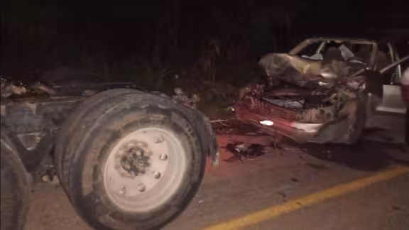Anoche, una camioneta Chrysler Voyager gris, con placas del Estado de Campeche, en la que viajaban dos personas, sufrió un accidente frontal contra un tractocamión amarillo sin caja sobre la carretera estatal Sihochac–Haltunchén, en el municipio de Champotón.