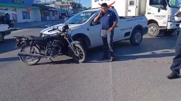 El percance ocurrió alrededor de las 08:00 horas, cuando el conductor de la motocicleta, acompañado de una joven mujer, intentó cruzar hacia el otro carril. En ese momento, el chofer de la camioneta intentó tomar el retorno sin percatarse de la presencia de la moto, provocando el impacto frontal.
