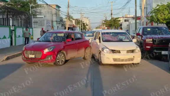 El percance ocurrió sobre la avenida 55, cruce con la calle 26-A, a escasos metros —una cuadra antes— del acceso al puerto pesquero industrial. En ese punto, el conductor de un automóvil Nissan Tiida, color blanco, con placas DGV-438-B del estado de Campeche, impactó por alcance la parte trasera de un vehículo Suzuki, color rojo, con placas DGT-577-A, también del estado.