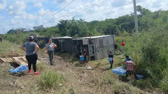 La carga de agua purificada de un tráiler que se volcó en la tarde, fuera de la carretera federal Escárcega-Villahermosa, en el kilómetro 288 entre la comunidad de Kilómetro 36 y el campo experimental forestal El Tormento, fue saqueada por ejidatarios y personas que transitaban en ese momento en sus vehículos, afortunadamente el conductor y su ayudante resultaron ilesos, al lugar llegaron elementos de la Guardia Nacional (GN) división carretera
