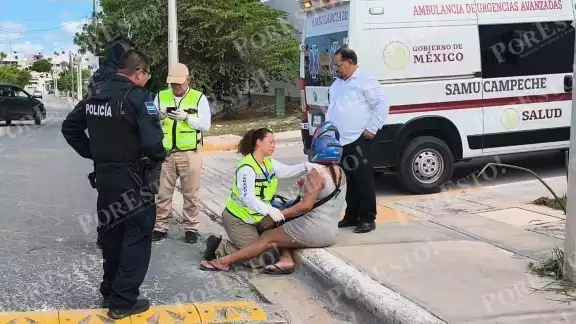 El exceso de velocidad provocó que una mujer resultara herida al derrapar su motoneta en calles de la zona centro, donde paramédicos del sector salud y policías tuvieron que intervenir.