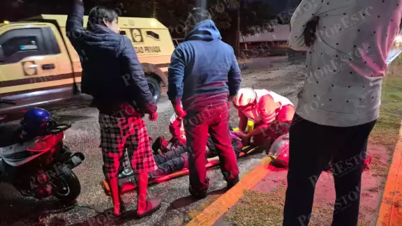 Al lugar arribaron paramédicos de la Cruz Roja Mexicana, quienes brindaron atención prehospitalaria al motociclista y, debido a la gravedad de sus lesiones, procedieron a trasladarlo a un hospital, acompañado de su madre, para una valoración médica más completa.