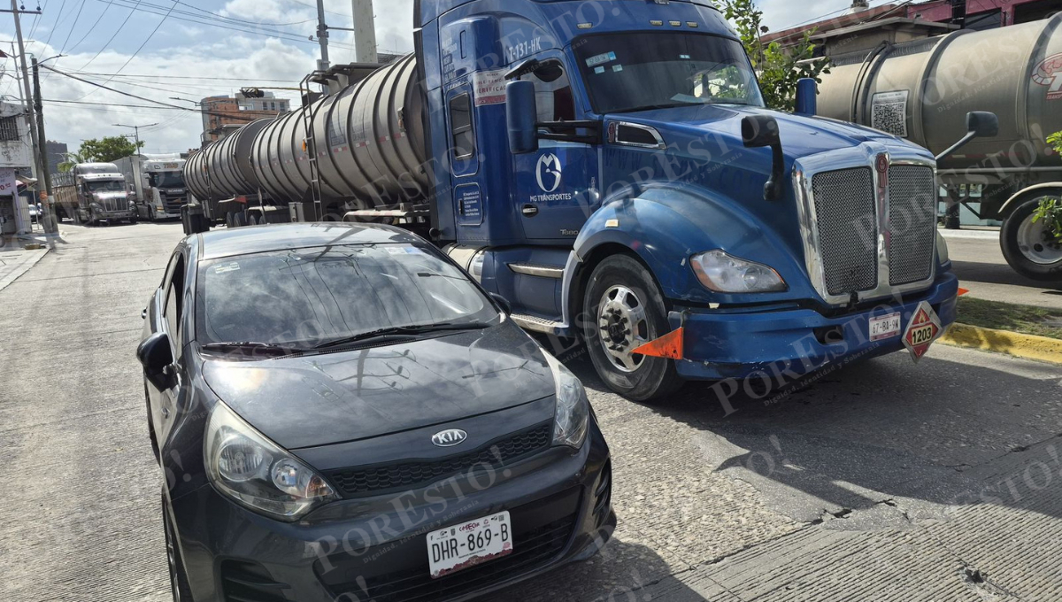 Los hechos se registraron sobre la avenida 10 de Julio, a la altura de la calle 40, donde el operador de un tractocamión marca Kenworth, color azul, con placas de circulación 67-BA-9W del servicio federal, impactó el costado izquierdo de un vehículo Kia Rio, color negro, con matrícula DHR-869-B del estado de Campeche.