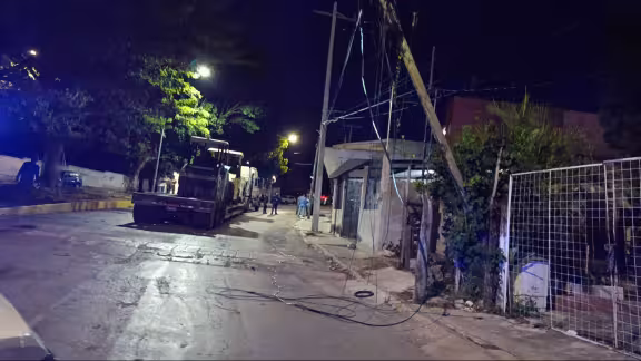 Debido a la dimensión de la unidad, aparentemente los cables se enredaron en su estructura mientras este circulaba por la zona, derivando en que se tensaran lo suficiente para posteriormente “ceder” ante la fuerza del camión y romper los postes.