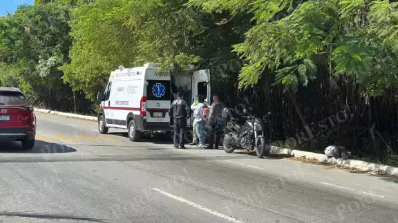 El accidente ocurrió cuando una pareja viajaba a bordo de una motocicleta modelo 220 sobre la avenida Costera con dirección a la Pedro Sainz de Baranda. El “jinete”, al estar a la altura de Palmas I, frente a la zona de topes, hizo su alto, lo que no fue observado por el motorizado del vehículo 300, quien al ir a exceso de velocidad no pudo frenar.