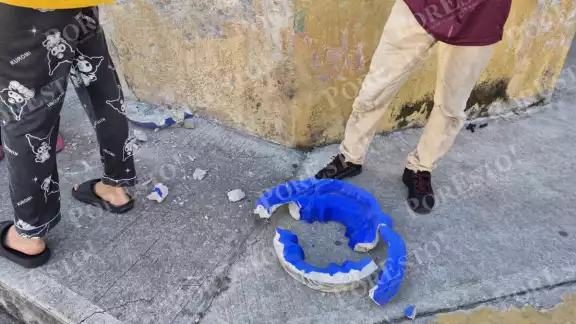 Hombre sufre grave lesión tras caerle una figura de concreto en Ciudad del Carmen