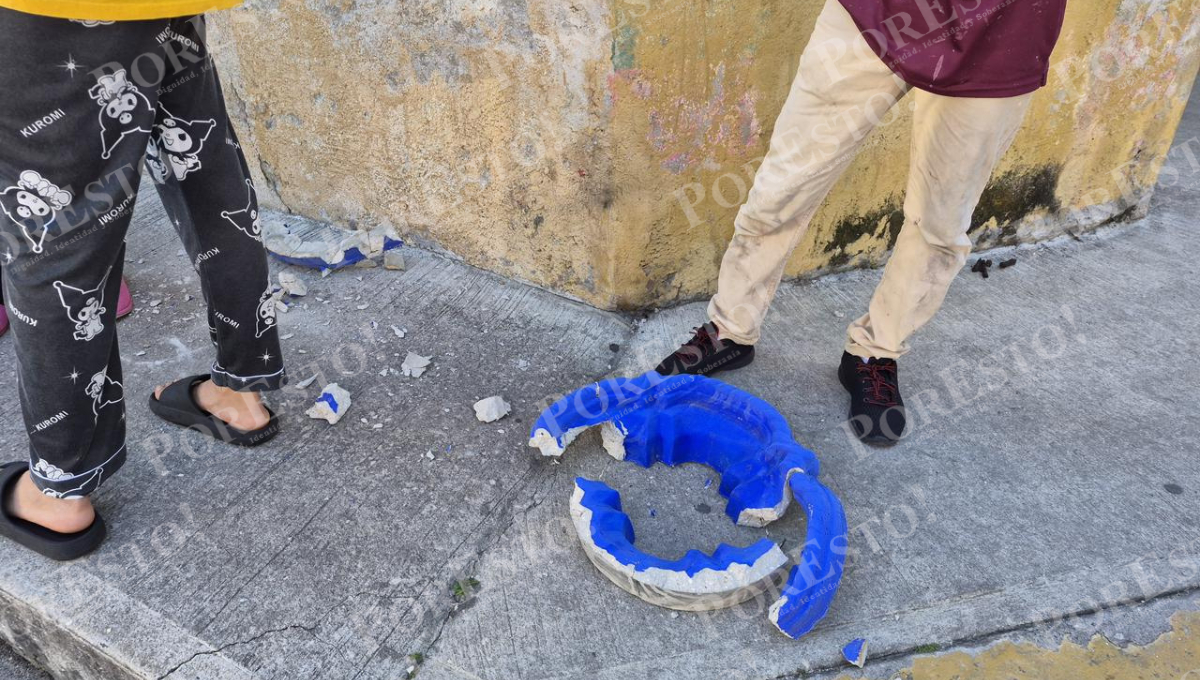 De manera repentina, la figura de concreto que se encontraba colocada en un orificio de una vivienda de la zona se desprendió, impactando directamente en la cabeza del peatón, provocándole una lesión severa y sangrante, lo que ocasionó que quedara aturdido y tendido sobre el pavimento.