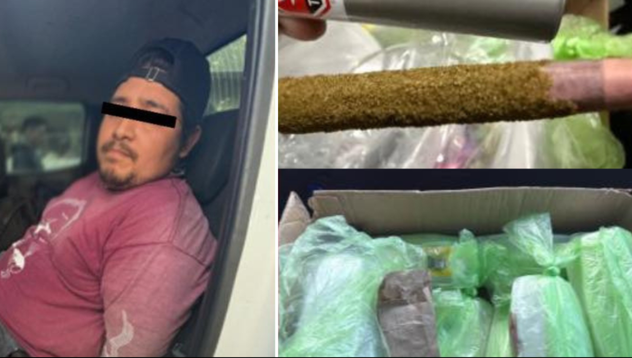 Un hombre fue detenido en la colonia Huanal, Campeche, luego de que la Policía Estatal le asegurara una maleta con bolsas, recipientes y cigarrillos que contenían hierba verde con características similares a la marihuana.