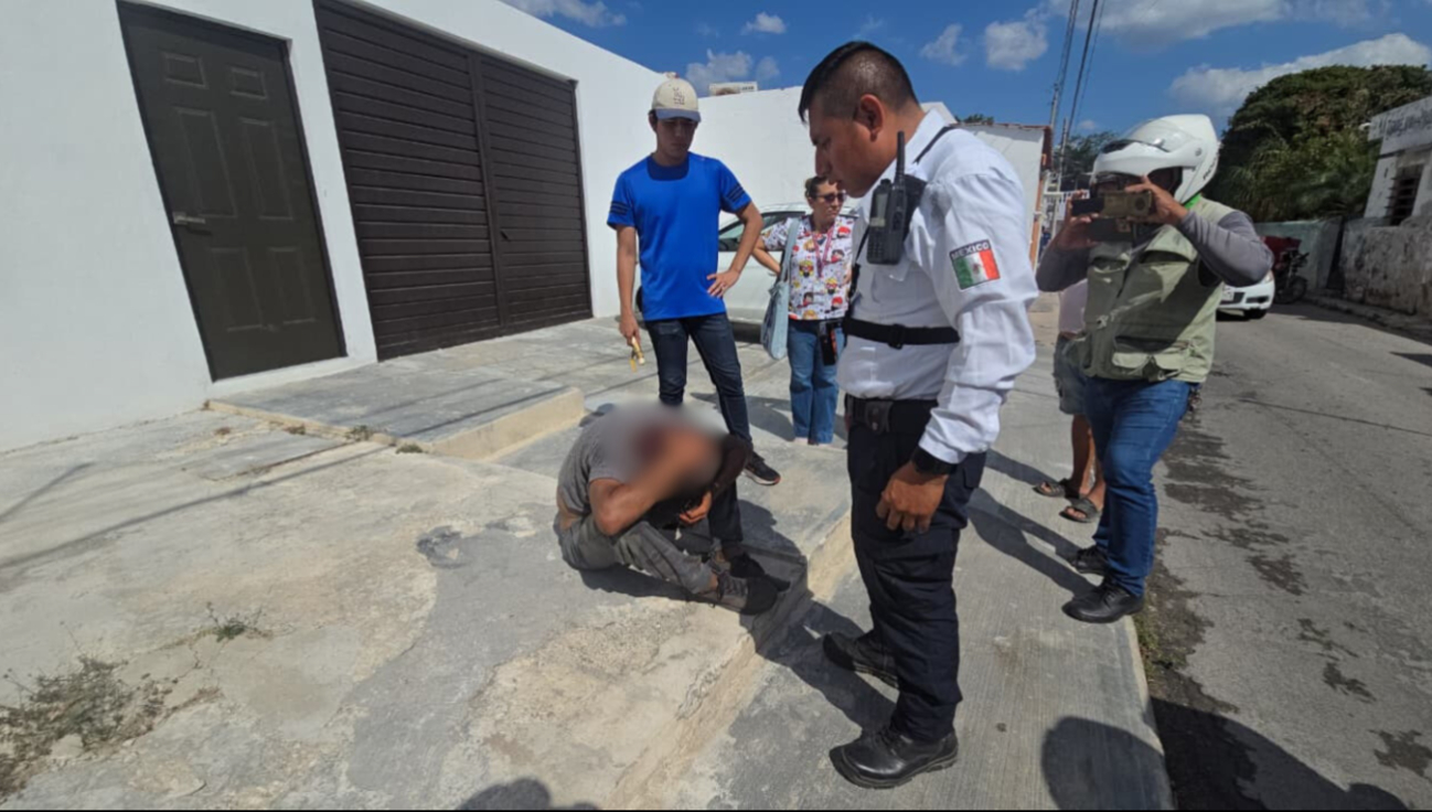 Los vecinos, al percatarse del robo, siguieron al sujeto hasta el cruce de la calle Panamá entre Ecuador, donde lograron interceptarlo y golpearlo en la cabeza, causándole una herida sangrante leve. Finalmente lo sometieron en el suelo, evitando que continuara corriendo.