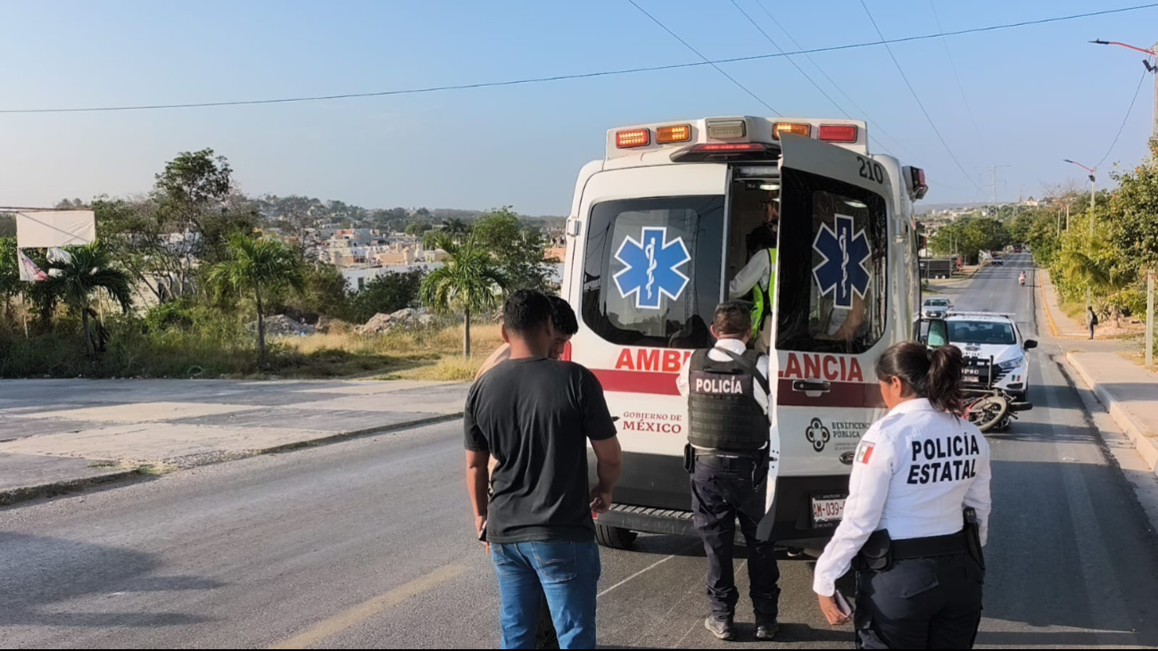 Una mujer resultó lesionada la mañana de este domingo tras un accidente de tránsito en la Avenida Baja Velocidad, a la altura de la colonia Kalá, en la capital del Estado, donde un taxi impactó por alcance a una motocicleta.