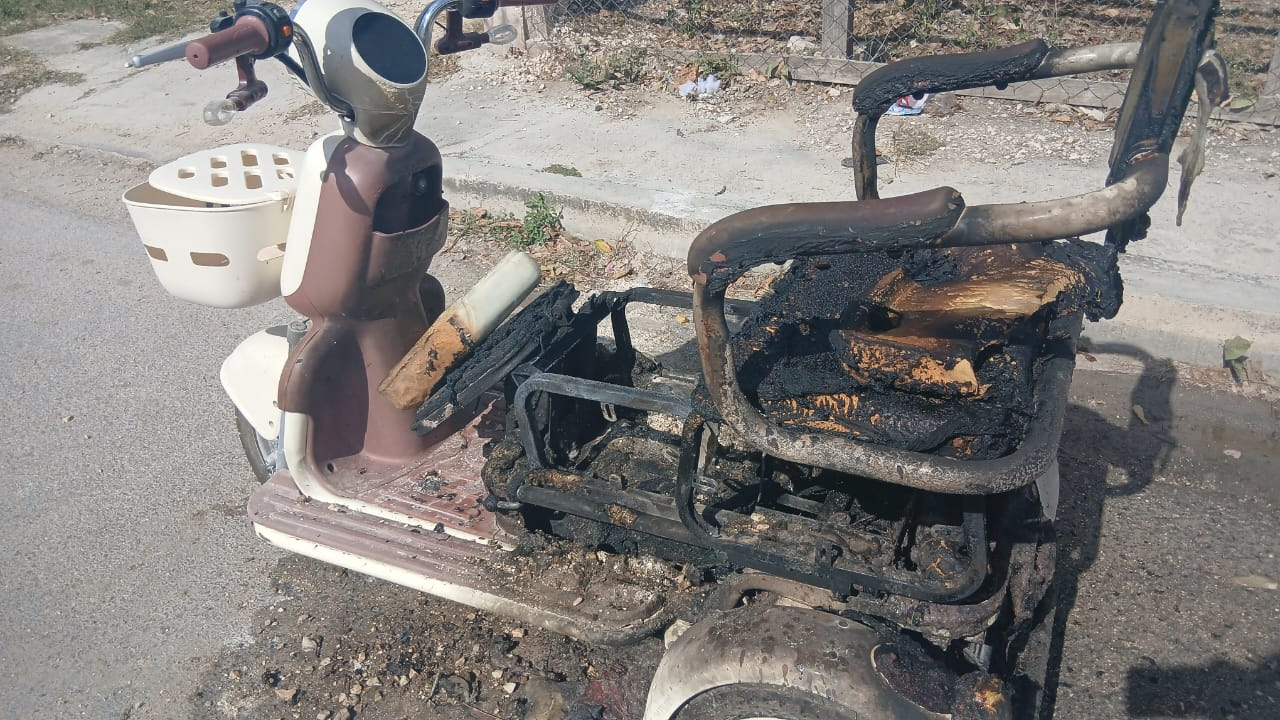 Una mujer fue atendida por personal del Sistema de Atención Médica de Urgencias (SAMU) al sufrir una descompensación de la presión, luego de que el fuego consumiera la motocicleta eléctrica color blanco que conducía, al parecer por un corto circuito, sobre la calle 36 entre 49 y 51 de la colonia Ricardo Flores Magón. El incendio fue controlado por vecinos del lugar.