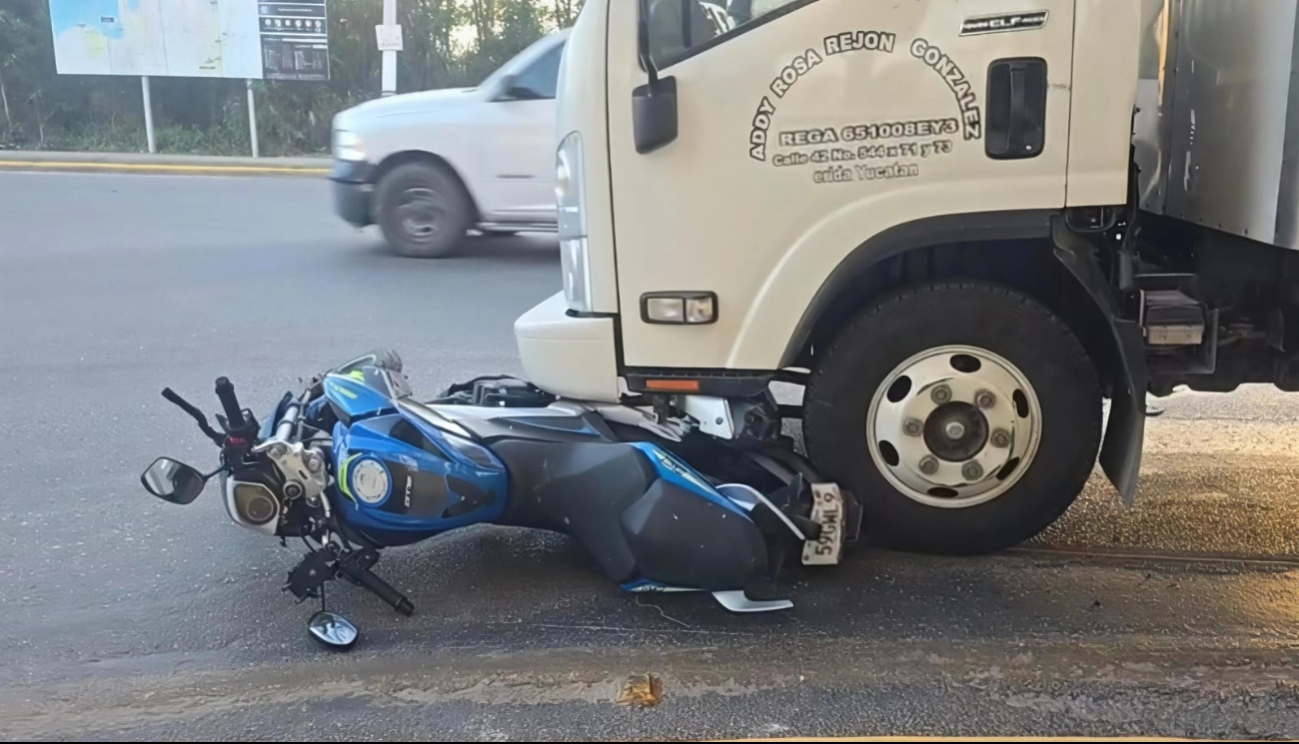 Joven se salva de ser aplastado por un camión en Campeche tras saltar a tiempo de su motocicleta
