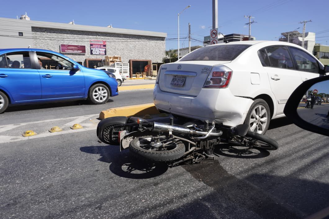 El exceso de velocidad y la falta de precaución causó que un motociclista choque contra la parte trasera de un auto que hizo su alto en la Francisco I. Madero, donde fue requerida la asistencia médica de la policía y el sector salud.