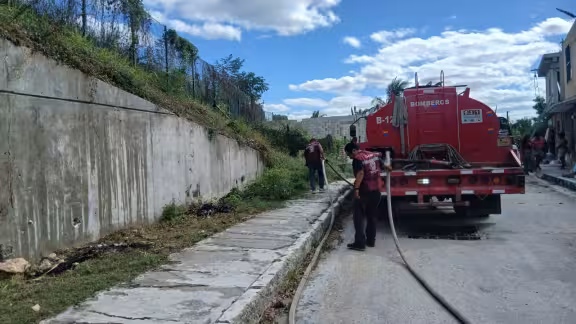 Al llegar encontraron a varios vecinos que con cubetas con agua trataban de controlar el incendio. Enseguida, junto con personal de Protección Civil y elementos de la SPSC, se dieron a la tarea de controlar el fuego, que al parecer había iniciado en el patio de una casa cercana.