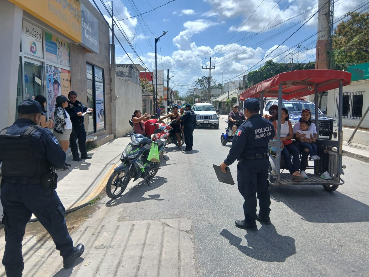 Según datos recabados, a las 12:10 horas, elementos de la Secretaría de Protección y Seguridad Ciudadana (SPSC) instalaron de manera sorpresiva un filtro de revisión de vehículos sobre la calle 27 de la colonia Centro, donde empezaron a revisar la documentación de sus conductores. Se detectó que algunos conductores no portaban su casco de protección y otros carecían de documentos; sobre todo, es para evitar que circulen unidades con reporte de robo.