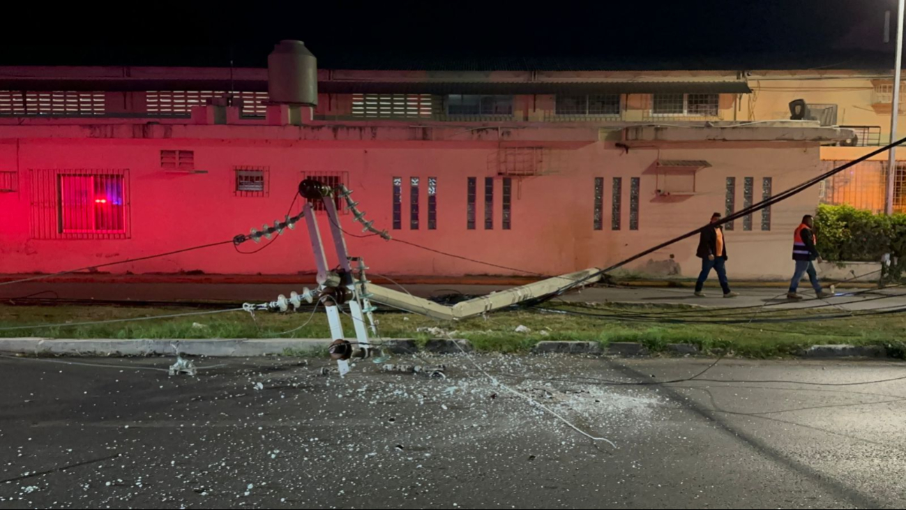 La estructura de concreto quedó tirada sobre la avenida junto con cables de media tensión, dejando sin electricidad varios negocios y casas en el barrio de Santa Ana, en tanto se montaron operativos en la zona para dar con el paradero del responsable.