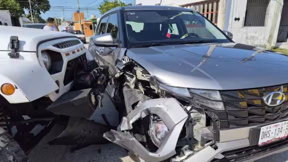 Al llegar al cruce con la calle Dzalam, presuntamente no respetó el señalamiento de alto total, impactándose de frente contra el costado lateral derecho de una camioneta Hyundai Creta, color gris, con placas DHS-134-B del estado de Campeche, la cual avanzaba en aparente preferencia.